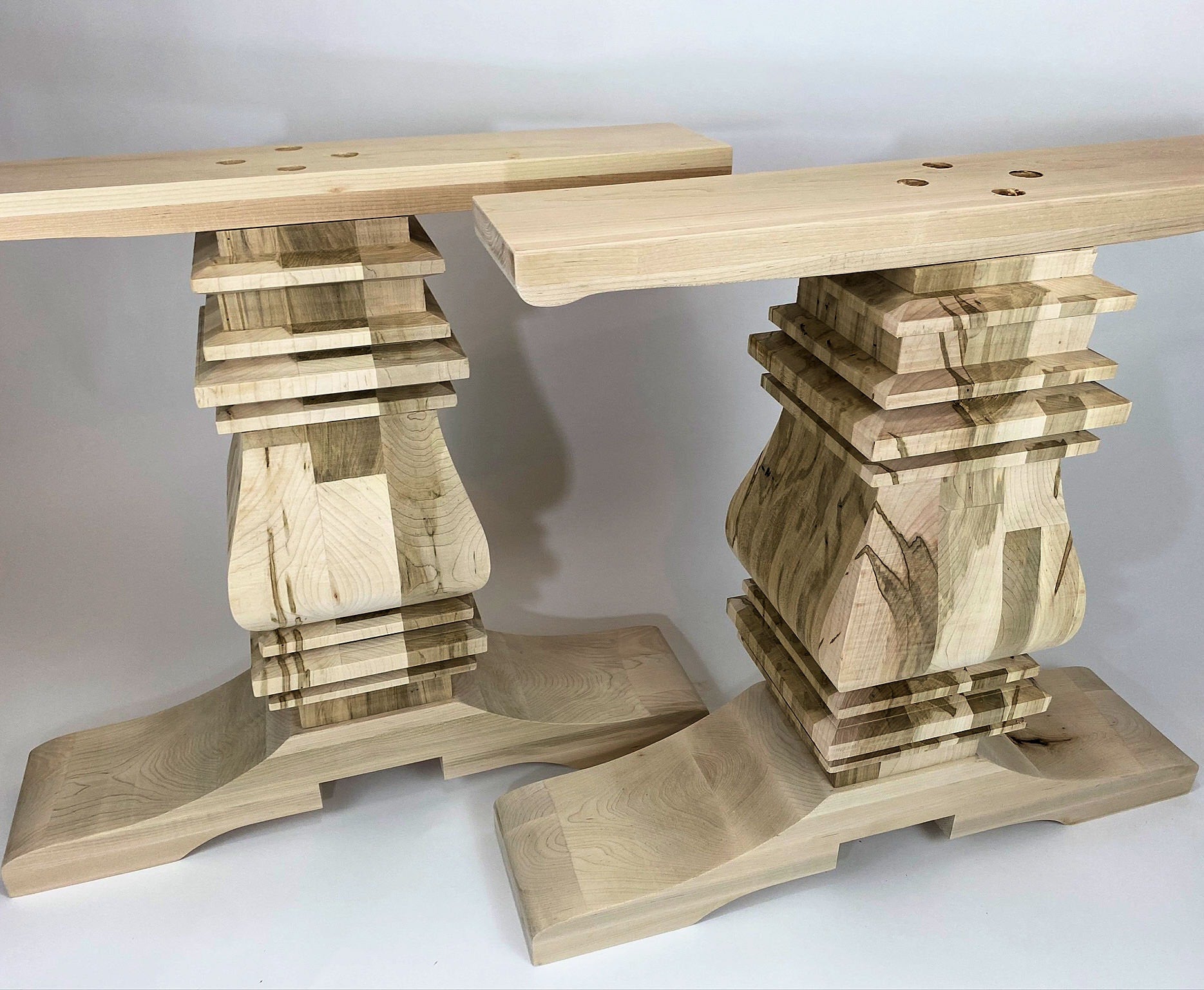These Trestle Table Legs from Wye Creek Woodworks are the perfect addition to your table project. Made from a variety of high-quality hardwoods, these legs are solid wood throughout and very sturdy to hold even the heaviest of table tops. Each leg pair is handmade and comes disassembled with all the necessary hardware to connect the components together, as well as the hardware needed to attach the base to the top.